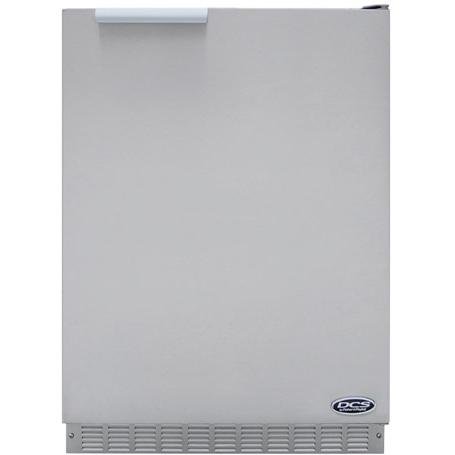 6.1 cu.ft. Capacity Outdoor Beer Refrigerators with Two Removable Tempered Glass Shelves Automatic Interior Light Digital Temperature Control and Full Auto-defrost Stainless?DCS RF24RE2 6.1 Cu. Ft. Capacity Compact Outdoor Refrigerator - Stainless Steel. RF24RE2. Outdoor Compact Refrigerators. This Compact Outdoor Refrigerator from DCS is the perfect addition to your backyard patio or recreation area. The RF24RE2 sports 6. 1 cubic feet of storage room, interior lighting and two-and-a-half shelves to handle all the beverages you need for outdoor entertaining. This refrigerator is UL approved for outdoor use and includes an automatic interior light and a temperature range from 33 to 52 degrees fahrenheit. Exclusive digital electronic controls are located at the top for convenient access. Open door alarm and close assist ensure your items stay cool and refreshing. Door is right hinged and designed to open and close within the width of the refrigerator body. This allows a true flush fit with adjoining cabinetry. The RF24RE2 6. 1 Cu. Ft. Compact Outdoor Refrigerator from DCS is UL approved for indoor or outdoor use and can be used in either freestandiing or built-in applications. Product dimensions (in inches): 23 7/8 W x 24 1/4 D x 33 3/4 H.