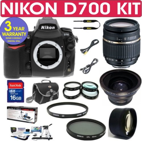 FeaturesIncludes BRAND NEW Nikon D700 (IMPORT) Digital SLR Camera Body with MACK 3 Year World Wide WarrantyTamron AF 18-250mm f/3.5-6.3 LD Aspherical IF Macro Zoom Lens with Built in Motor + .43x Wide Angle Lens + 2x Telephoto Lens + 4 Piece Macro Close Up Kit16 GB Memory Card + 62mm UV Filter + 62mm CPL Filter + Camera Bag11 in 1 Starter Kit which includes: deluxe video & camera shoulder strap, tripod, tripod carrying case, 5 piece cleaning kit (5 cotton swabs, fiber cloth, lens cleaning fluid, blower brush & lens tissues), universal screen protectors, Corel MediaOne Editing Software (quickly & easily improve and enhance your photos and videos in an instant with only a few clicks) and 110/220 Volt Adapter.MACK 3 Year World Wide Warranty NIKON D700 (IMPORT) Digital SLR Camera + Tamron AF 18-250mm Zoom Lens + .43x Wide Angle Lens + 2x Telephoto Lens + 4 Piece Macro Kit + MACK 3 Year World Wide Warranty?
