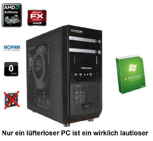 HeidePC®- NO FAN - Gaming PC 0 dBA Fanless - Bulldozers - OCTA CORE - ** THE HAMMER ** could not be quieter (AMD Bulldozer FX Series Eight-Core FX-8120 (8 x 3.10 GHz) CPU Cooler Fan No-Fan, ASUS M5A99X EVO AMD Socket AM3 + 990X/SB950, 4GB DDR3, GeForce GTS 450 1GB Passive Fanless, HDD 1TB SATTAIII 6GB / s, 24x DVD ± RW burner with Lightscribe, 400W PSU 80 + No Fan Fanless, incl. Win7 Home Premium 64 bit DVD