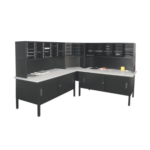 Mailroom Corner Storage Table with Riser, Cabinets and 60 Slot Organizer